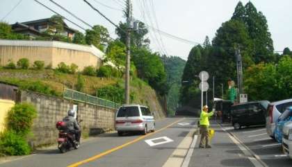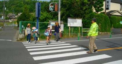 交通量の多いところや横断歩道には,地域の見守り隊の方々が登校の様子を見守っていただいています。