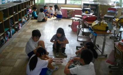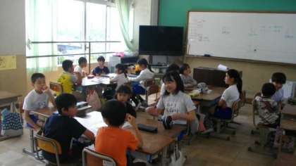 6年生の子どもたちが,1年生の教室に行って子どもたちを各教室に連れて行きました。とてもやさしいお姉さん,お兄さんです。今日は,運動会で行う「大玉送り」や「台風の目」の打ち合わせもすることができました。