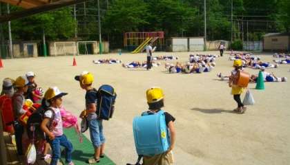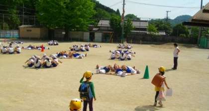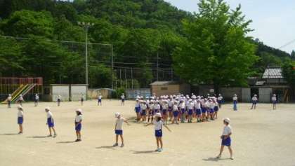 5,6年生が,集団演技の練習をしています。ちょうど1年生が下校する時間帯でした。1年生のお友達が「すごい,すごい。」と声をあげていました。