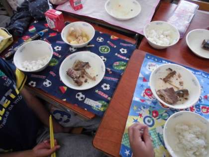 みんな上手におはしを使ってさばの骨をとって食べていました。