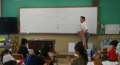 4年生の学習の様子です。折れ線グラフからわかることを発表しています。