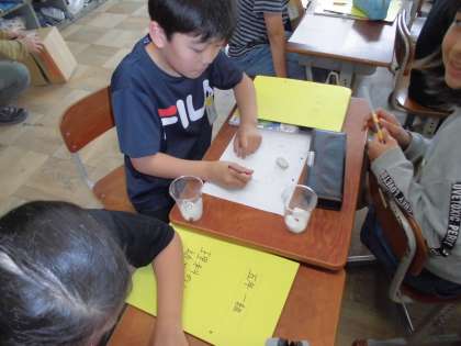 ・5年理科「発芽の学習」ではインゲン豆の種子を使って学びます。今日は種子の観察をしました。