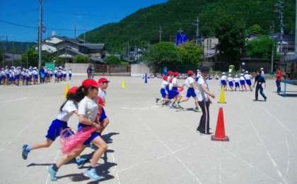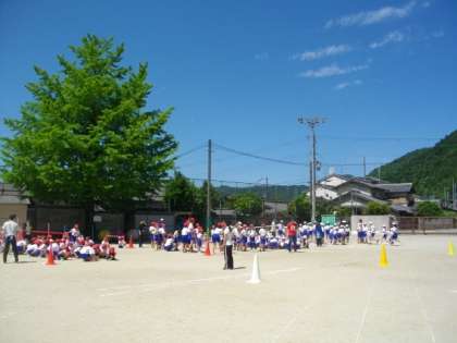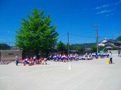たてわり競技の練習です。コーンを回るのがなかなか難しそうです。明日,もう一度練習します。