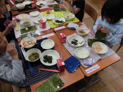1年生も上手にのせて食べていました。