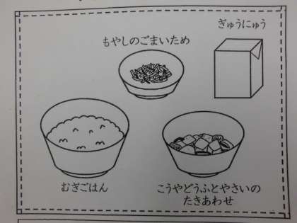 ・もやしのごまいためがおいしかったです。わたしはもやしが好きなのでふやしました。しゃきしゃきしているところが大好きです。また作ってください。