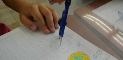 3年生はコンパスで円をかく練習をしています。