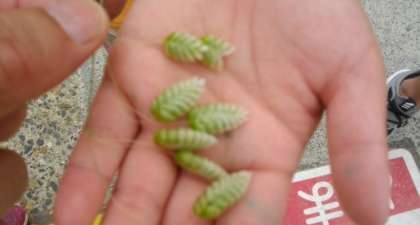 「先生。見て,見て。」登校時に見つけたものを見せてくれました。「なんていう名前なの?」と聞くと「カメムシみたいな形をしているから”カメムシ草”かな!?」