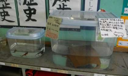 *ロッカーの後ろにおいてある水槽には,とても大きな生き物が泳いでいたので,びっくりしました…