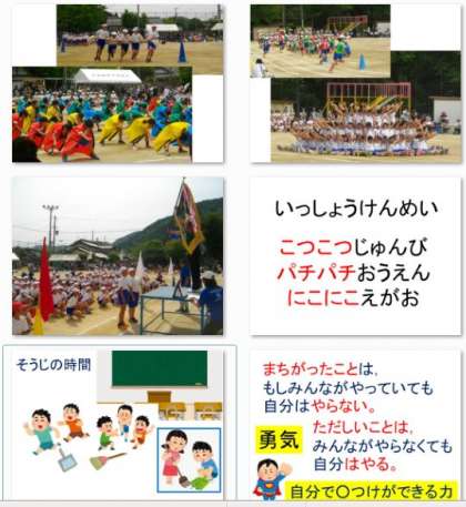 「こつこつ・パチパチ・にこにこ」を合言葉に,笑顔あふれる学校をみんなでつくって行きましょう。