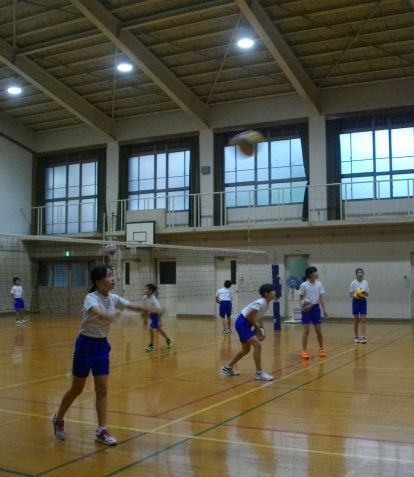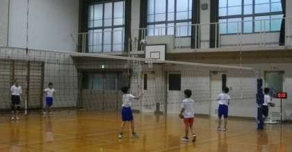 バレーボール部が活動しています。元気のよい声が体育館に響いています。