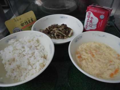青椒肉絲にはピーマンが入っていますが,苦手な児童も今日はおいしく食べられたようです。