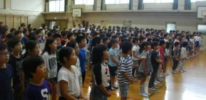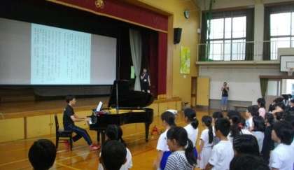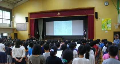 お昼に歌の会を開きました。「ともだちになるために」を全校児童で歌いました。