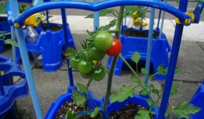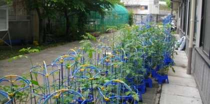 ミニトマトが順調に育っています。赤く色づき始めたトマトもでてきました。