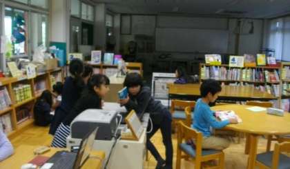 4年生は,図書館で本を選んでいます。