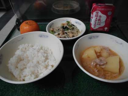 ・肉じゃがのみその味がしっかりわかって,おいしかったです。きりぼしだいこんのにつけが,うち豆の味がわかっておいしかったです。また食べたいです。