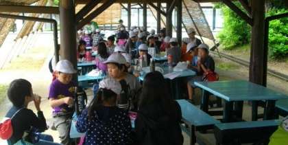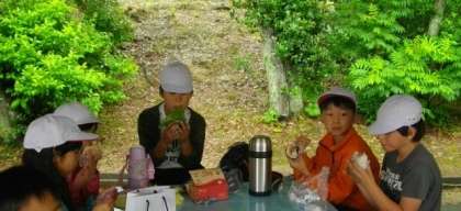 おにぎりべんとうを、おいしそうに食べています。いろんな具があって、楽しそうです。