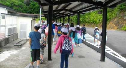 プレイホールに移動して、入所式を行います。雨があがりました。