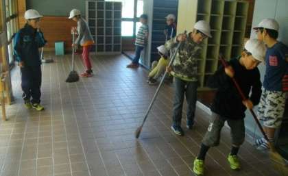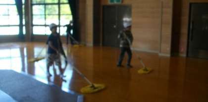そうじの時間です。「来たときよりも美しく」