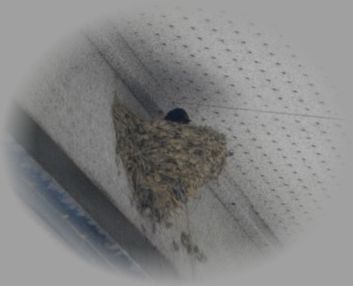のきしたには、ツバメが巣を作っています。