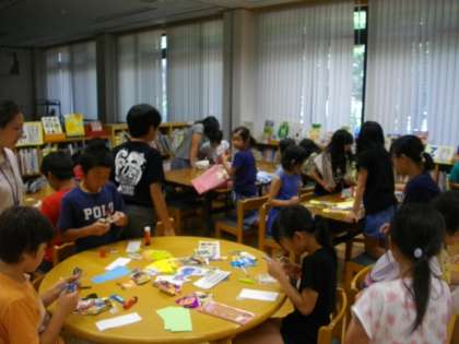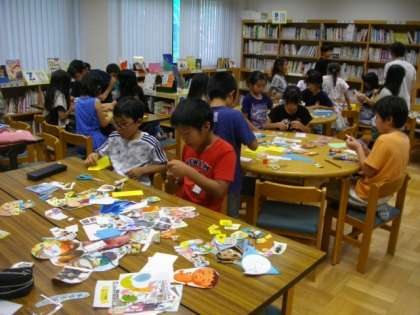 今日は,中間休みに,図書室でしおり作りの取組がありました。