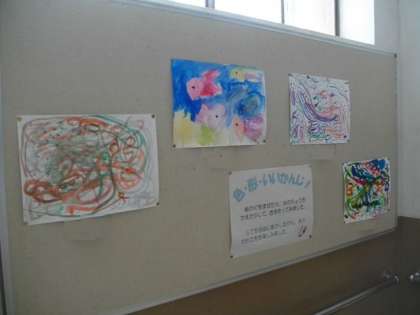 3年生の作品です。習字は,筆の運び方に気をつけて書きました。図画工作作品は,絵の具の混ぜ方を工夫して描きました。