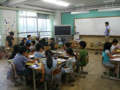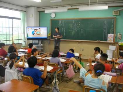 3年生は,国語で「夏の言葉を知ろう」の学習をしています。イラストをみながら,同じような経験がないか,意見を交換しているところでした。