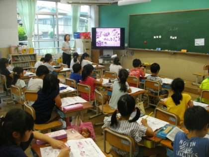 1年生は,「わ」「れ」など,似た形のひらがなを書くときに,どんなことに気を付けたらいいのかを学習して,練習していました。
