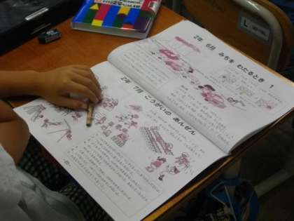 2年生は,安全ノートを使って「こうがいのあんぜん」について学習をしていました。