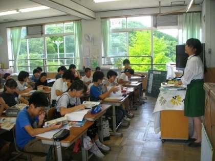 6年生は,社会科で歴史の学習を年表をみながら進めています。1年生は,校歌の練習をしていました。