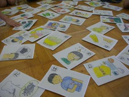 中間休みに,委員会主催で「けんこうカルタ大会」が開催されました。今日は3年生のお友達が挑戦しています。