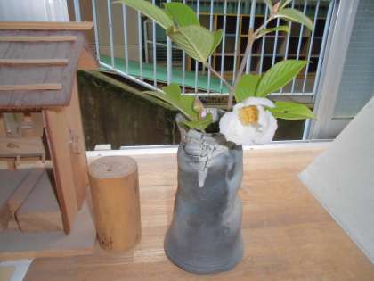 地域のかたから「沙羅双樹」(サラソウジュ)「祇園精舎の鐘の声 諸行無常の響きあり 沙羅双樹の花の色 盛者必衰の理をあらわす 奢れる者も久しからず ただ春の夜の夢の如し 猛き人もついには滅びぬ ひとえに風の前の塵に同じ」平家物語に登場するナツツバキをいただきました。朝に咲き夜には散る大変可憐な花です。廊下を夏の暑さからひと時,白の美しさで涼しさを与えてくれました。