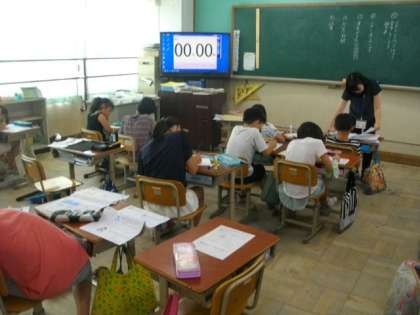 3組は朝の時間に絵本の読み聞かせを行っています。3年生は,1学期の学習のまとめに取り組んでいました。