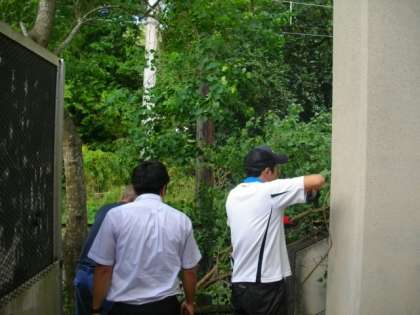 東側の樹木の剪定をしています。