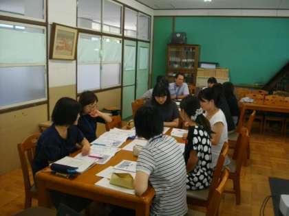 夏休み中に,教職員は人権に関する研修や図書館教育,教科指導など,話し合いをしたり講義を受けたりして研修を進めています。
