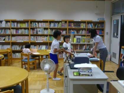 3時間目に,3組のお友達は図書館で本を借りていました。1年生の部屋では,初めてコンテを使うということで,順にコンテを配布していました。