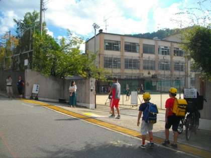 8時25分の段階で,ほとんどの子どもたちが校門をくぐることができました。