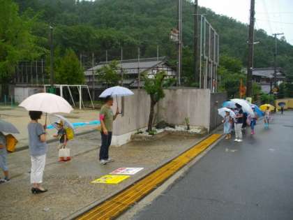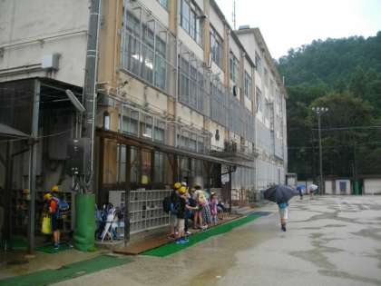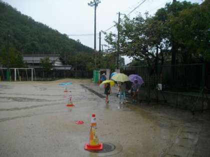 朝から雨が降っています。子どもたちが登校してきました。