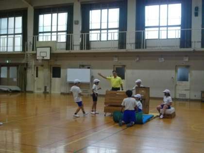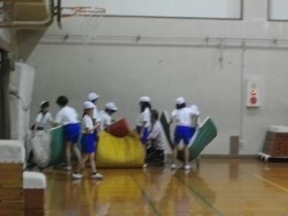 4年生は体育を終えて,片づけをしていました。