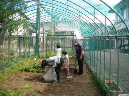 3組は,畑の整備をしています。4年生は,図書館で読書をしています。
