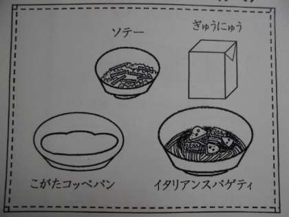 今日は,スパゲティだったので,コッペパンはいつもより小さいサイズでした。