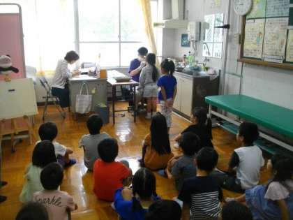 学校歯科医の先生にお世話になり,1,2年生が歯科検診を行いました。写真は1年生の様子です。とても静かに待つことができています。