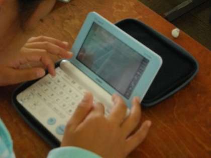 今年度は,ICT機器の開発にかかわる企業様からのご支援を得て,6年生全員を対象に最新の「電子辞書」をしばらくお借りすることになりました。