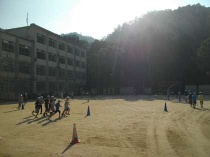 涼しい朝になりました。登校後に朝ランニングを取り組んでいます。
