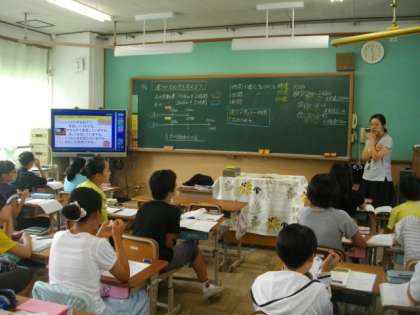 3年生は,社会科で話し合いをしています。6年生は,算数で速さの求め方を考えています。