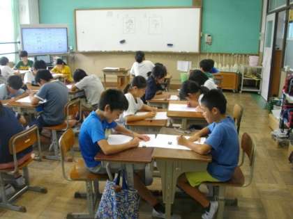 5年生は,図画工作の時間に,お友達の顔をかいていました。