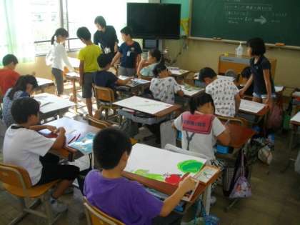 5年生は外国語活動,3年生は図画工作に取り組んでいます。