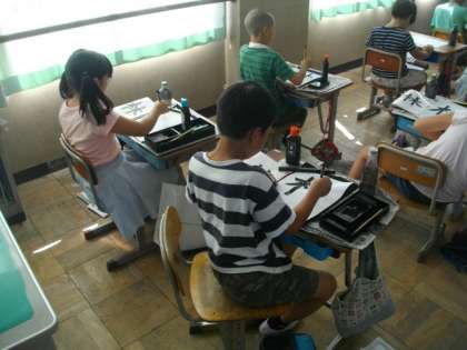 4年生は,習字に取り組んでいます。