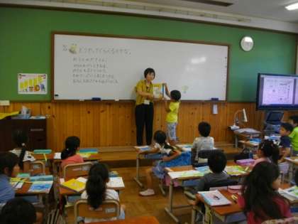 1年生は,算数科で,いろいろなものをつかって「長さ比べ」をしています。
