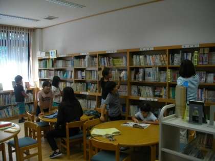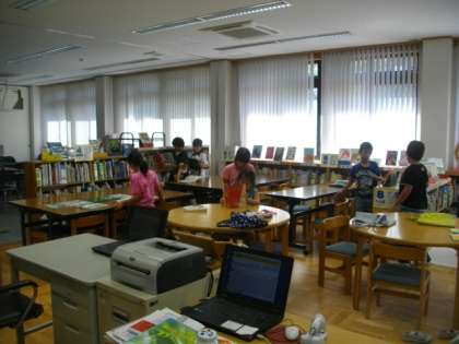 3年生が,図書館で本を選んでいます。