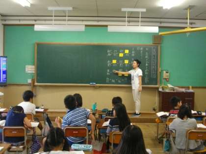 4年生は,音楽でリコーダーの練習をしています。国語では,漢字のカードを使い,組み合わせてつくった熟語でしりとりをしています。